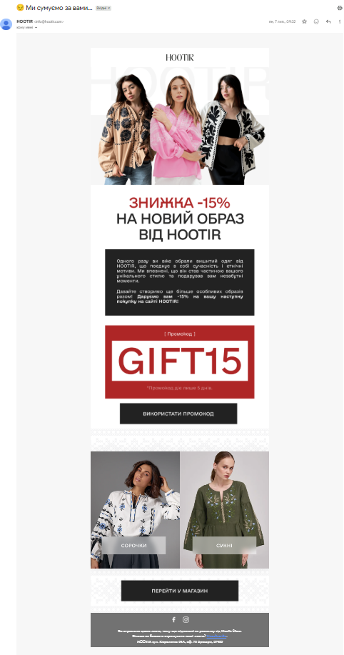 Такі листи виглядають як турбота, а не як реклама. Вони створюють відчуття, що бренд бачить клієнта як особистість.
