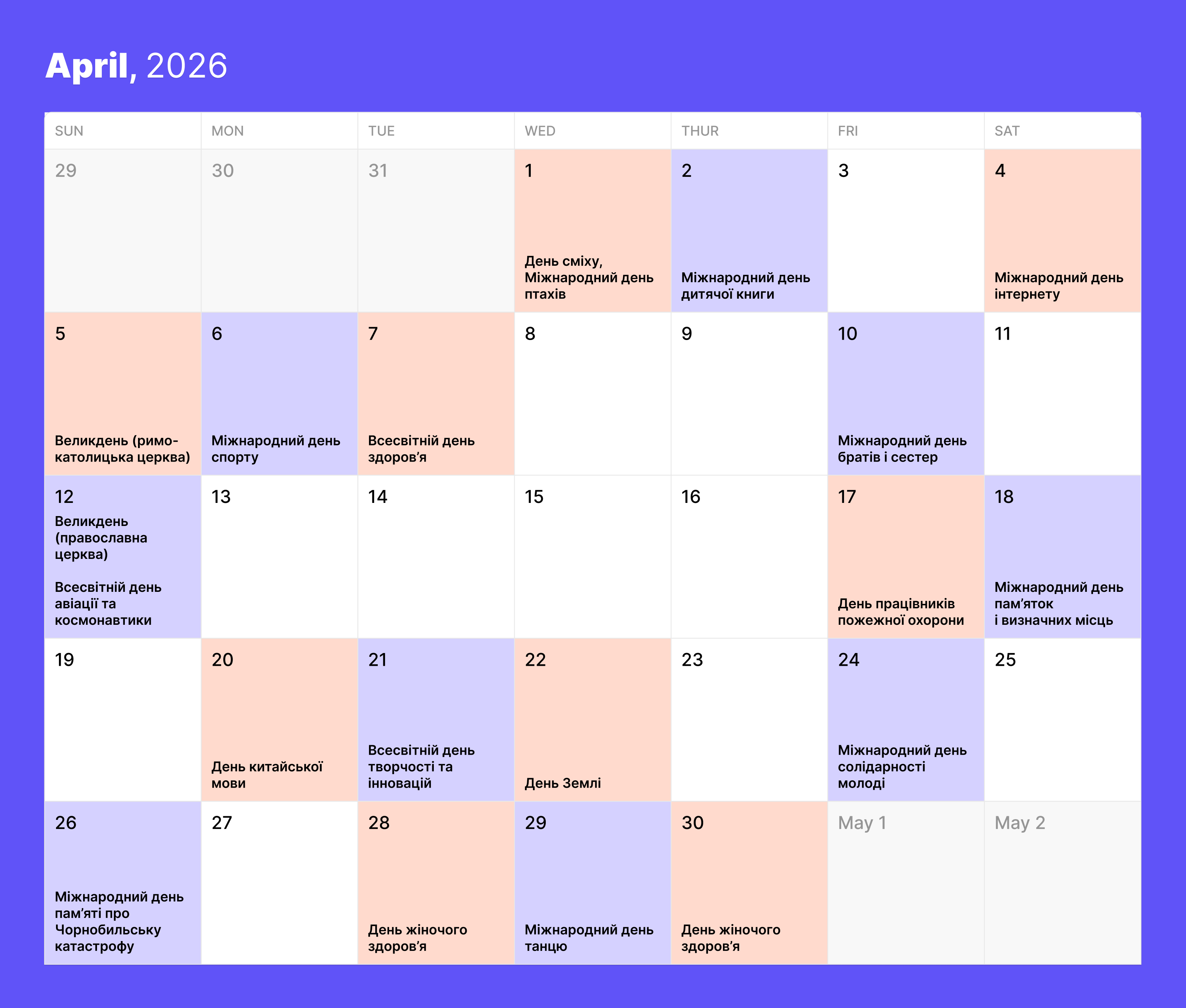 Ось основні інфоприводи квітня 2026 року, які можуть стати основою для email-кампаній: