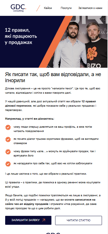 Наприклад, 2 листи на тиждень із промо-оферами можуть викликати втому, тоді як 2 листи з корисним або навігаційним контентом – сприйматимуться цілком нормально. Тому частоту завжди варто оцінювати в контексті змісту, а не лише кількості.