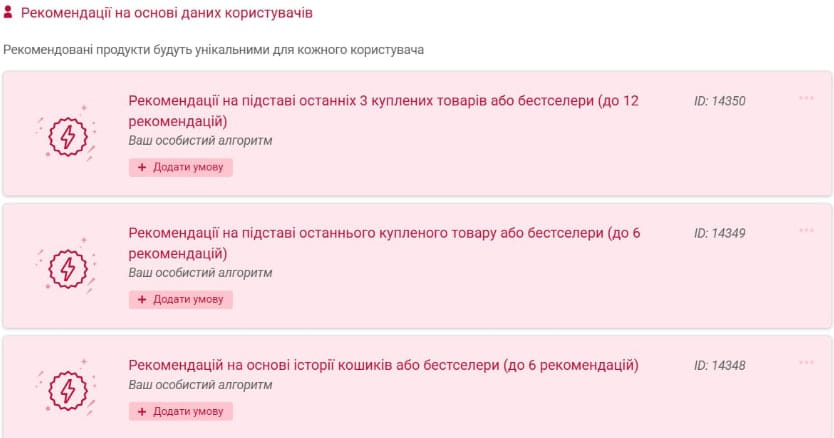 - Використовуйте AI-рекомендації для динамічного підбору товарів.